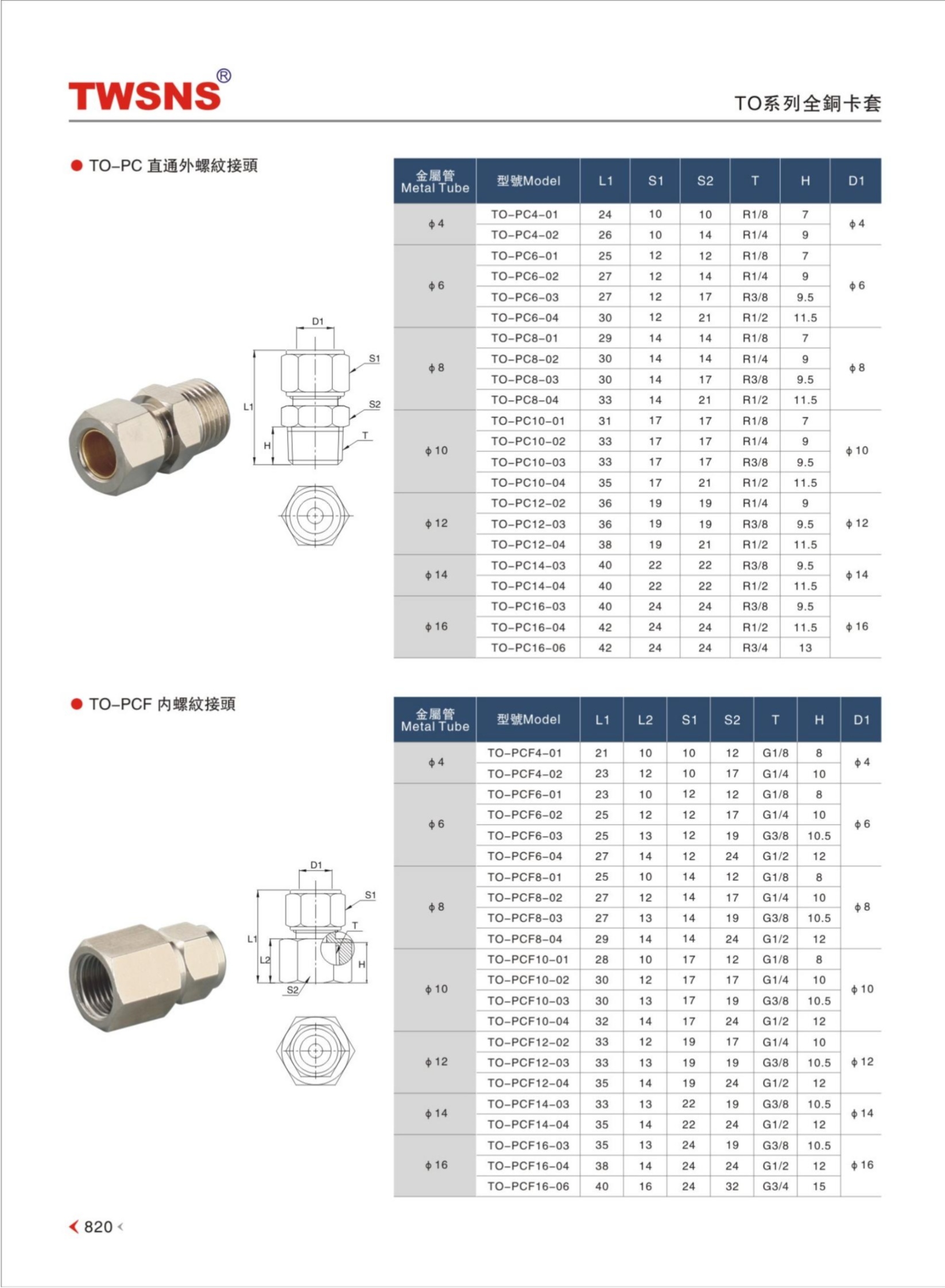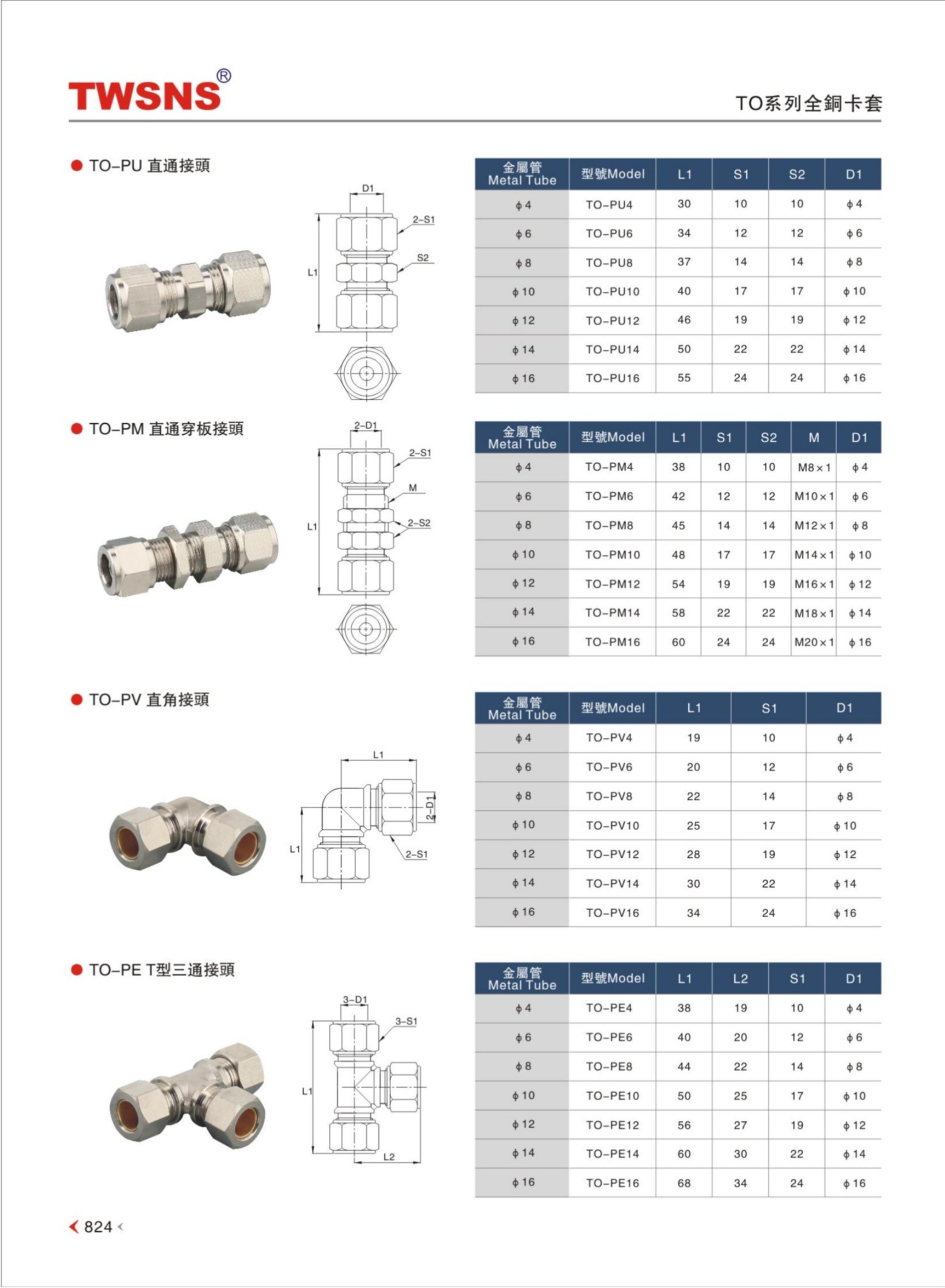 TO系列全铜卡套